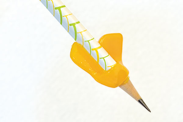 4歳までは親指、人さし指、中指の3本の指先で正しく持てないためペンスレードを使いますが、5歳になると指の力も発達するので、より自在に動かせる練習具としてユビックスをご利用ください。左右両用。